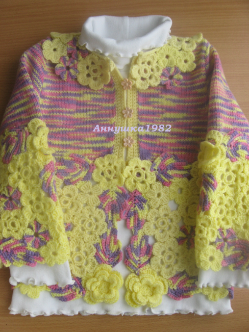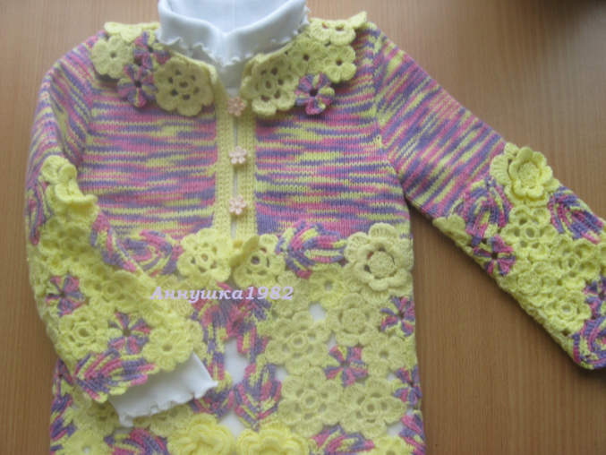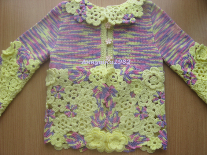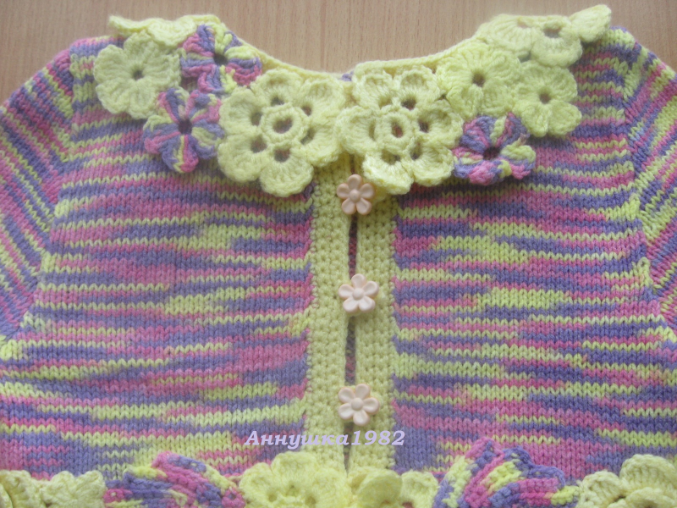 В ожидании тепла и лета связала легкий кардиганчик своей Аленке.