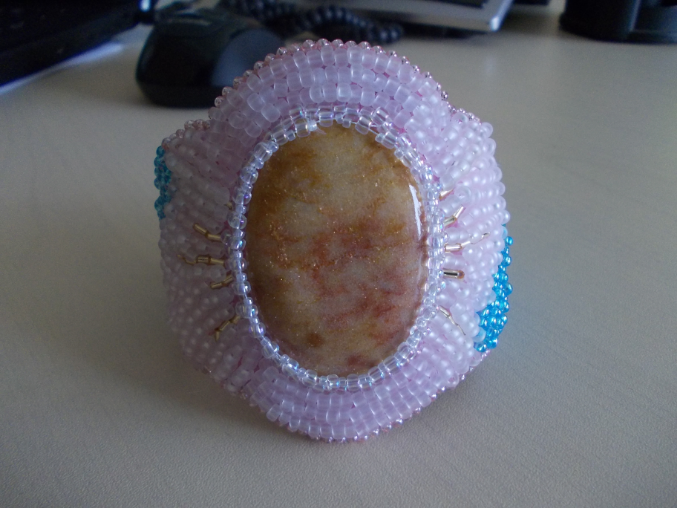 По середине кабашон Авантюрин, бисер Toxo, отделка из натуральной кожи.