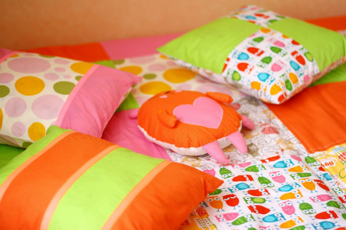 Я тоже подумывала сшить покрывало для дочки, но лапку шагающую пока не прикупила (в интернет- магазине она 3000 стоит- половина стоимости моей машинки