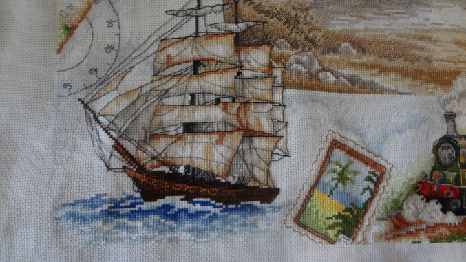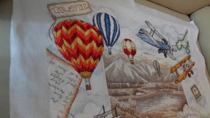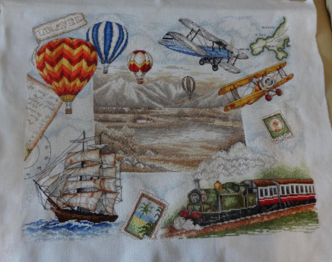 Вот он...результат 5,5 мес. работы...вышивала по возможности. Размер 52*44. Нитки АНКОР. Картина получилась очень динамичной, много элементов в движении...все летит, едет, плывет...