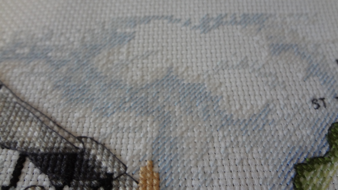 Канву лучше брать бежевого цвета, будут видны облака белого цвета, у меня они сливаются с канвой, видно конечно, но смотря под каким углом. ЗДЕСЬ КАК РАЗ ВИДНО белые ниточки: