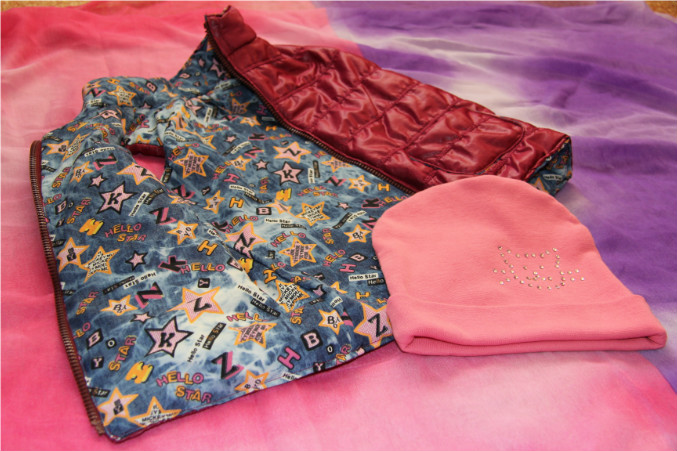 Думала, что после куртки долго еще не буду шить. Так нет же, руки покоя не дают)))) Результат - жилеточка! А также насмотрелась я на чудо-шапочки девчонок на сайте и захотелось тоже попробовать. Да и к тому же, поехала за молнией на жилетку, а купила спец станочек для приклеивания страз.