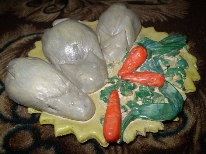 Солёное тесто (ТОЛЬКО ГОТОВЫЕ РАБОТЫ)Дочь осваивает солёное тесто. Свою работу называет "Морские свинки едят на обед морковку")))))))))))