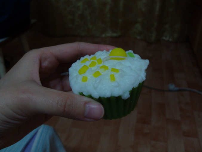 как такая красота доехала до меня в посылке и не испортилась???ха, это не пироженка, это свечка))))а похнет так отпадно)))))жечь тоже жалко)))