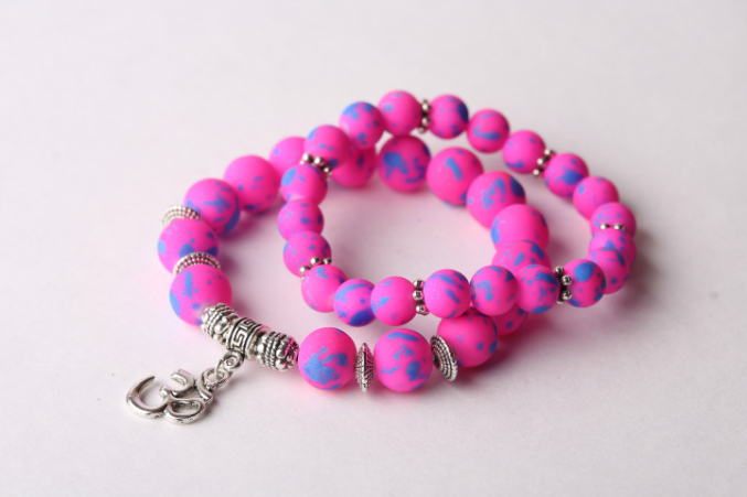 Розовый Ом - тонированный агат и фурнитура под серебро