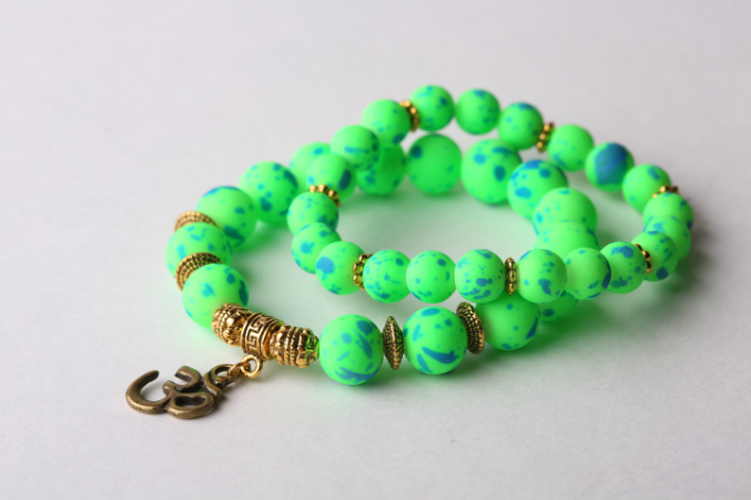 Зелёный Ом - тонированный агат и фурнитура под золото