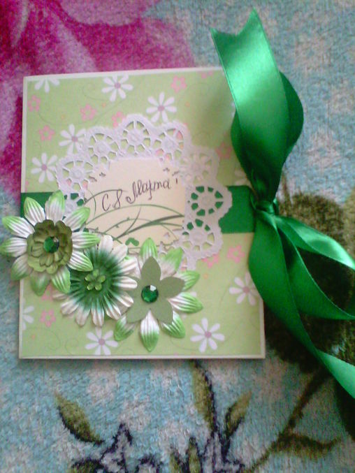 3. А эту открыточку делала для своей любимой кумы еще на 8 марта, в моих и её любимых зеленых тонах!