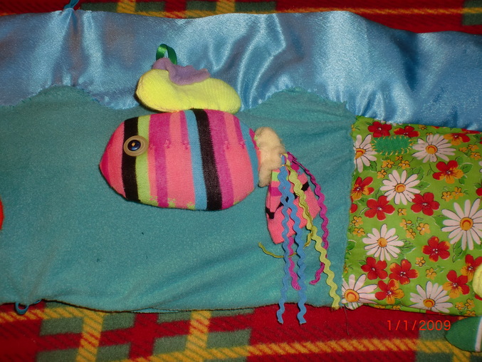 Все цветочки и ёжик - на липучках, рыбки подвешены на колечки.