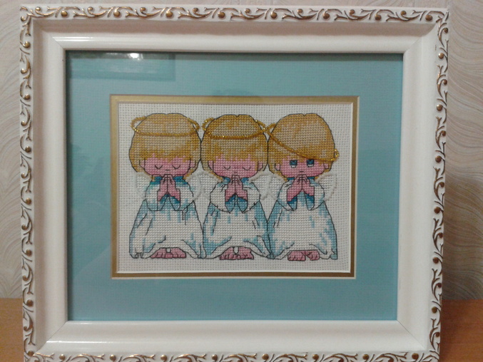 Работы замечательные!!! Оформленны очень красиво. По поводу освещения ангелочков... Вам их не осветят т.к. это не икона. Желание понятное, но Вы можете сами окропить их святой водой (крещенской).