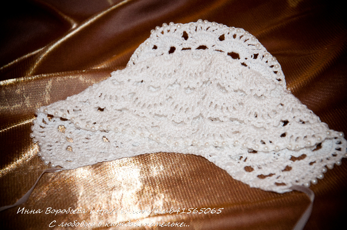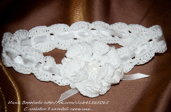 В подарок к комплекту на рождение малышечки я связала повязочку с регулируемым обхватом головы.