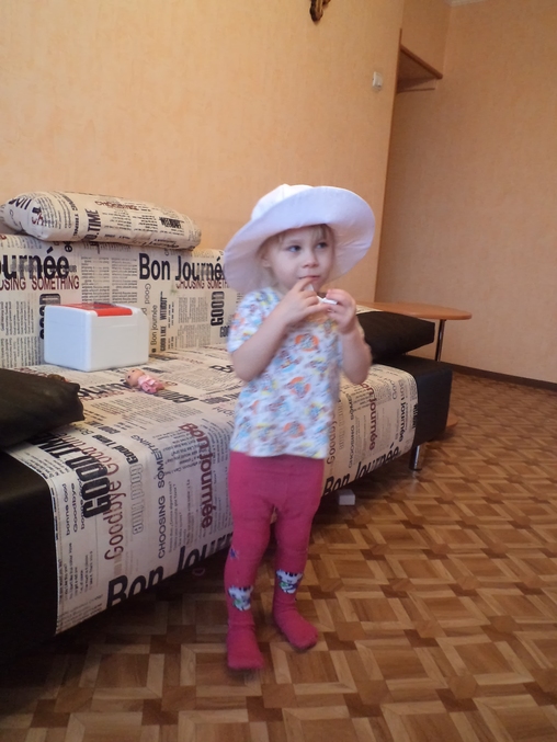 пока не решила с оформлением. Не знаю под какое из платьев шляпку носить будем. Раскроила и шью новые платьица дочке