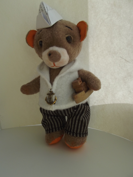 Вот такой мишутка получился! Ростиком 17 см. Сшит из флиса. Задумывала совершенно другой образ, а получился скромный медвежонок.