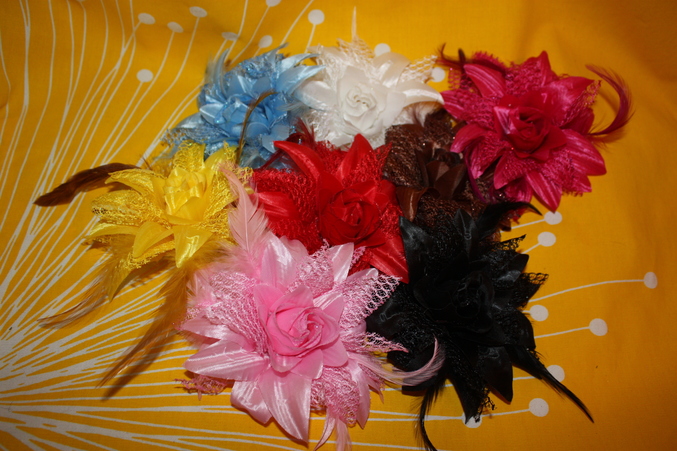 прошлым летом мне было очень удобно так прикалывать на разные шапочки цветы, потом снимать, стирать шапочку и опять одевать))