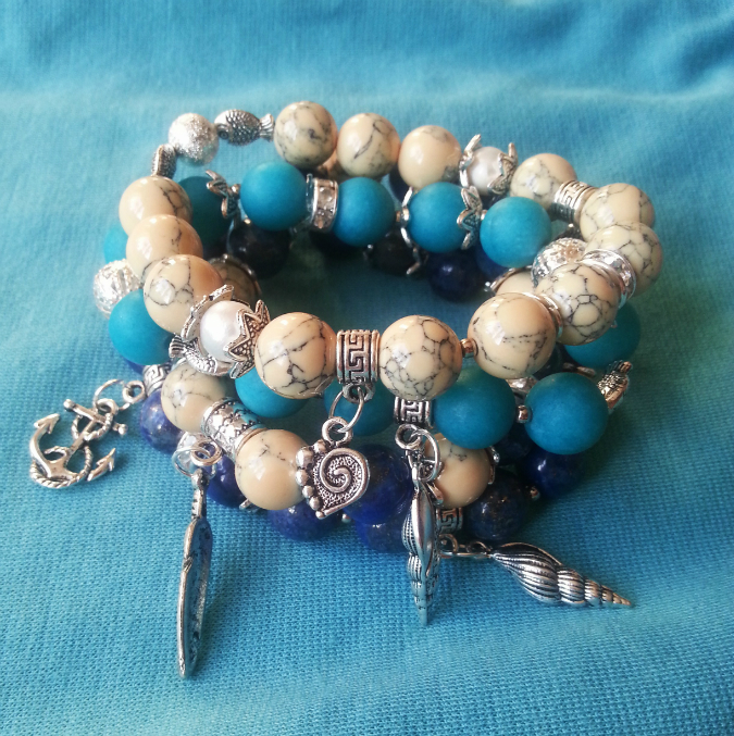 На этот раз у меня в главных ролях матовый бирюзовый агат. )Сделано на заказ для подруги).