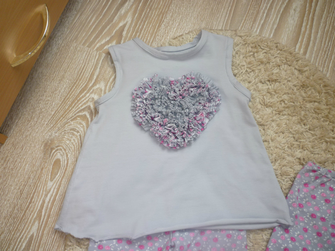 Шитье одежды, выкройки, ремонт одежды, шторы, швейные машины (уже приобретенные)Девочки вот сшилось для доченьки очередные вещички. Лето где ты, мы уже готовы)))) Материал - кулирка с лайкрой и кулир х/б.Низ у тунички и у маечки(проймы) обрабатывала зигзагом частым(оверлока нет)(( Сердечко делала из остатков, здесь выкладывал кто-то М.К