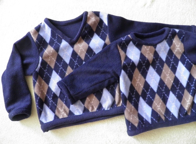 На кофты брала флис двух цветов. Вышло для сына (4,5года) и племянника (1,5 года). За основу брала готовые футболки.