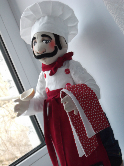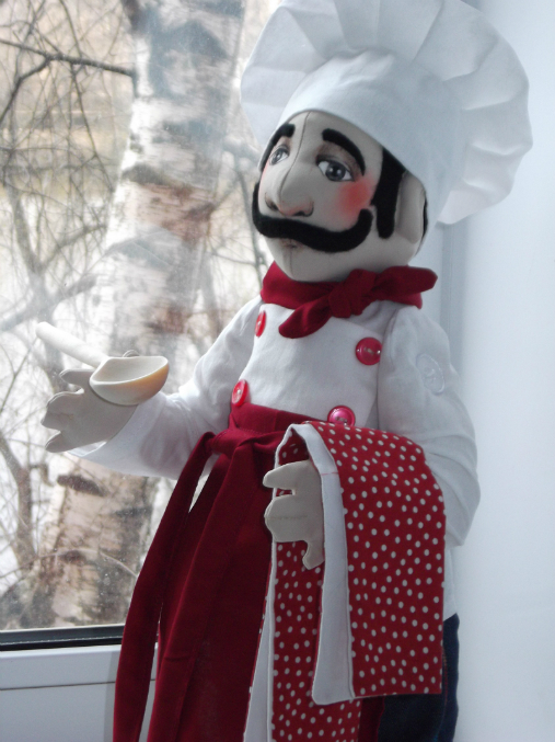 француз конечно , но влюблен в русскую кухню, и поварешка то у него деревянная.