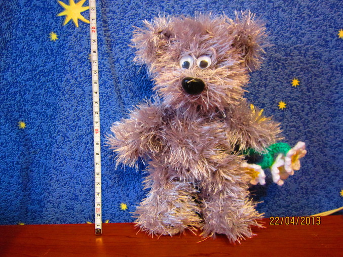 Игрушечный мир - животныеВот такой мишка связался из остатков травки в подарок девушке. Рост около 20 см. В процессе вязки поняла, что больше похож на собачку, может нос собачий или цвет ниток немедвежий какой то. Если уши собачьи пришить, мне чем-то Филю из "Спокойной ночи малыши" напоминает. Но девушка коллекционирует мишек, собака не покатит. Похож на медведя то?