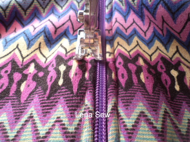 Молния у меня пришита и отстрочена одномоментно,потому что ткань смещается при шитье,а рисунок должен быть совмещен.Вторую половинку строчила при закрытой молнии.