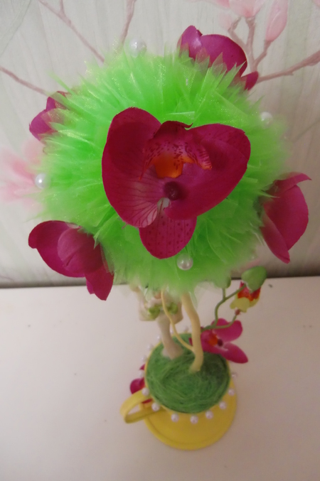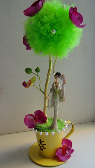 .... И я пошла гулять по цветочным магазинам.. И первое, что я увидела - замечательную японочку, которая собственно и решила судьбу всей композиции. Потом пришлось поизучать японские иероглифы ))) Название переводится как "Весна". А потом я задумалась, а орхидеи вообще ассоциируются с Японией? или я что-то перепутала? ))) Вот что получилось...