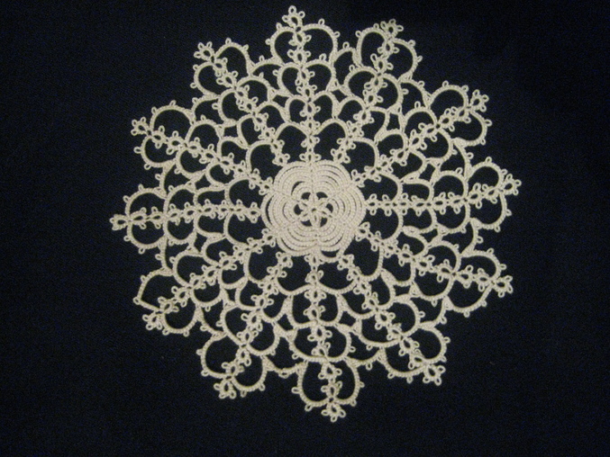 Салфетка в технике фриволите, диаметр 20 см.