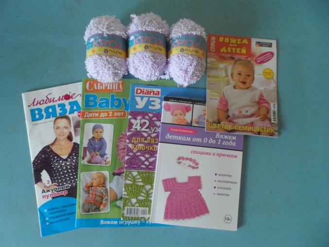 Пряжа "Кроха", журналы по вязанию.