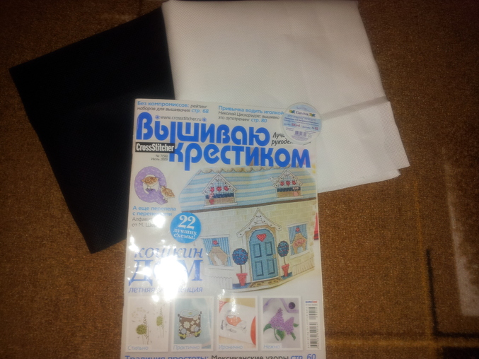 Канва черная и белая Aida 14 каждый примерно 50/50 , журнал Вышиваю крестом и проволка для бисера 10 м - 0, 4 мм