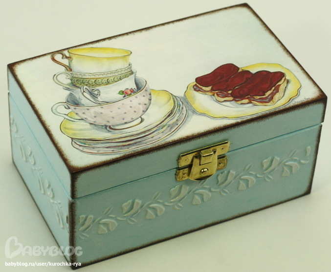 ДекупажЧайная шкатулка "Эклеры". Для любителей чая и пирожных:))