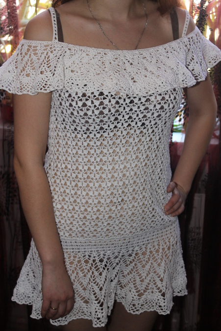 Связалось летнее платьице, клиентка очень хотела чего-нибудь веселенького))))))) сама нашла в инэте эту модель, а я ее воплотила в жизнь. (Сказала, что так и будет носить - без подклада!!!!!) Использовала нитки Maxi (100%хлопок, длина ниток в 100г-565м) ушло - 2,5 мотка.