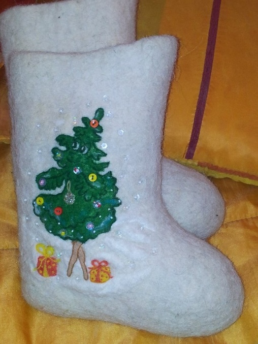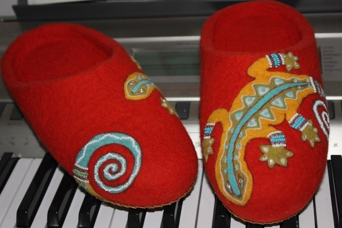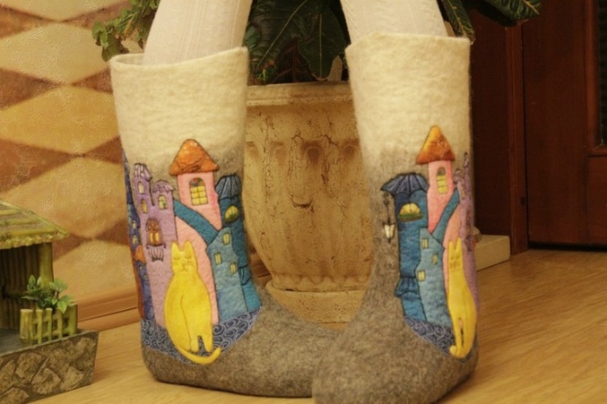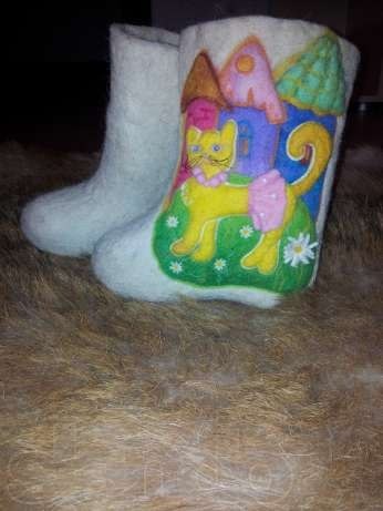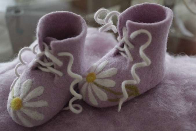 Валяные работы: пинетки, тапочки, валенки, брошки
