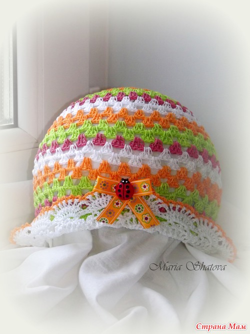 Здравствуйте, рукодельницы!!! Все уже вовсю вяжут на лето, а я только начинаю. Давно засматривалась на сочетание нескольких цветов сразу и вот пришёл мне заказ на такую панамку - шляпку.