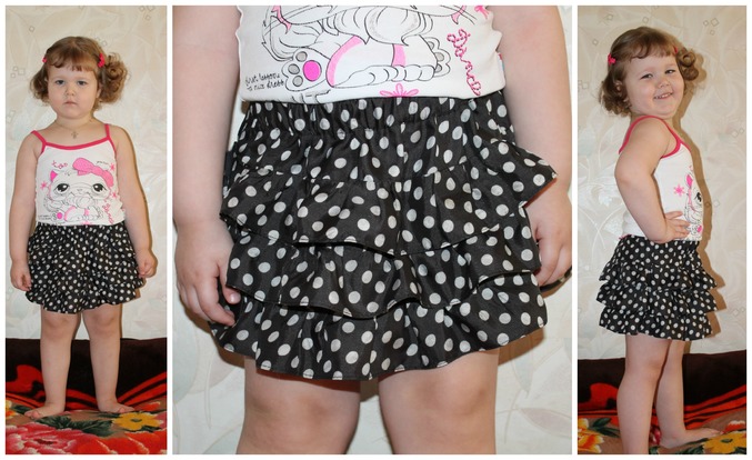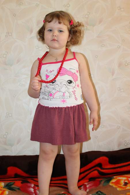 Из юбки свекрови сварганила юбочку доче,хотела пришить атласную бейку,да как то она не так смотрелась,решила просто подвернуть. Тоже в садик,ну или дома бегать.
