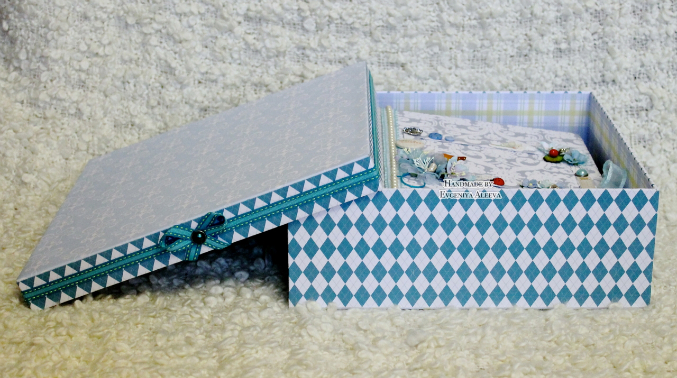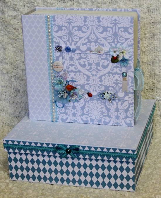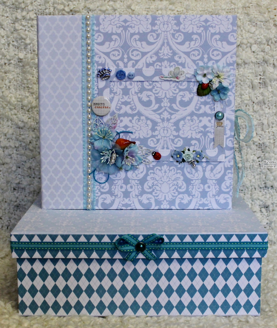 Альбом размера 25х25, имеет 9 разворотов плюс обложка, упакован в красивую, сделанную лично мной коробочку:)