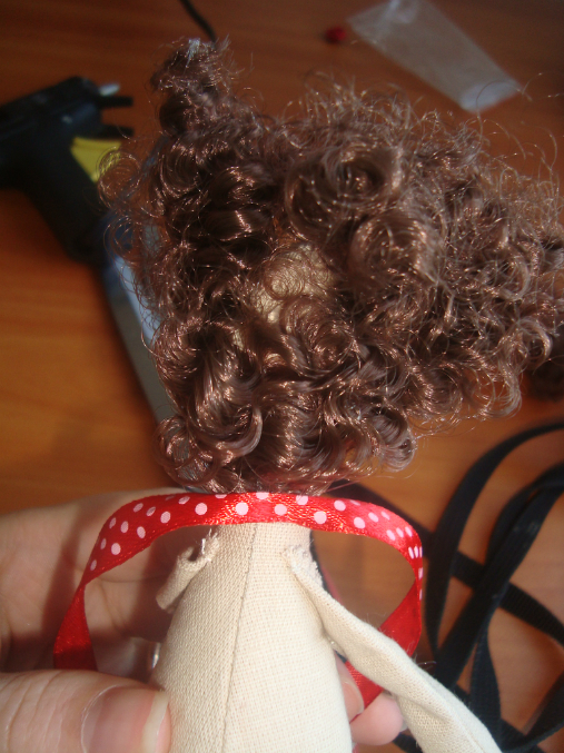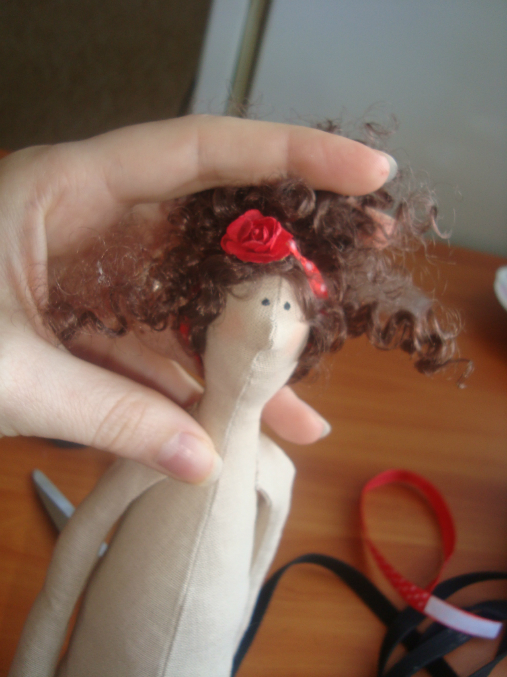 если причёска с лентой приклеиваю сразу ленточку