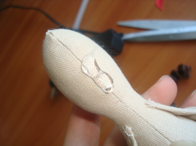 Приклеиваю горячим клеем сзади нашу колбаску
