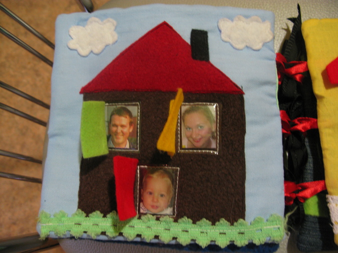 Домик-теремок Семьи с фотографиями мамы, папы и Андрея. Фотографии накрыла прозрачной пластиковой папкой.