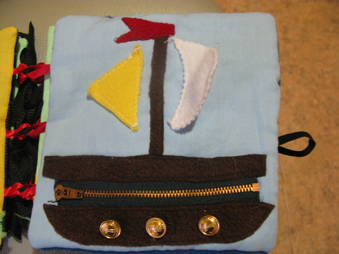 Кораблик с молнией и якорями-пуговками, паруса отгибаются