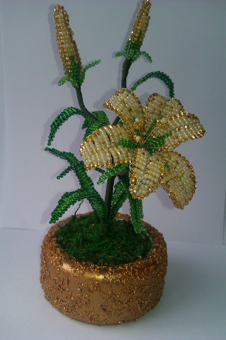 Бисер. Бисероплетение. Украшения из бисера.... ну или вольная фантазия на тему лилии. Что-то торкнуло меня на цветы... а тем временем, два дерева-долгостроя уже месяц пугают меня своими недогипсованными стволами. Дайте мне пинка что ли...