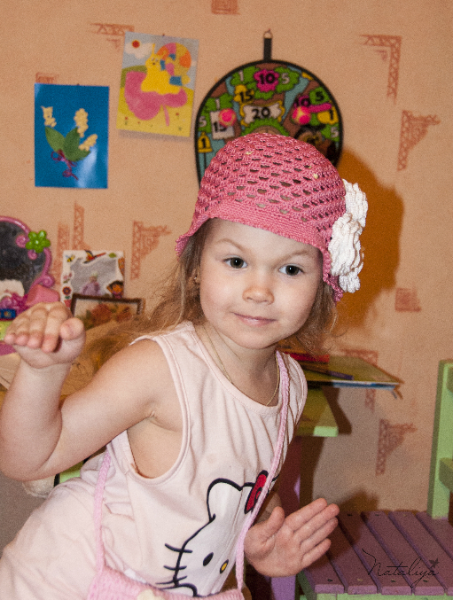 По глубине розовенькая ушки закрывает, мы сегодня в ней ходили, отличненько сидит. На фото так кажется, потомучто у нее на макушке заколочка была))))
