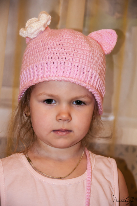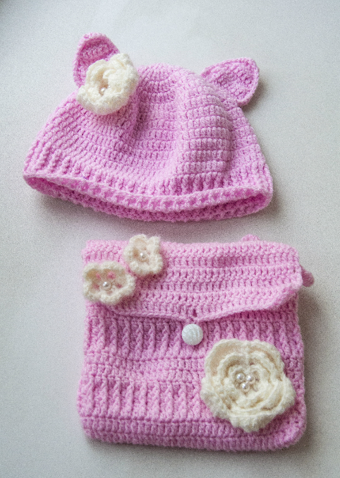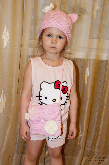 Очень обалденную шапочку-котика и к ней сумочку. Доча в восторге!