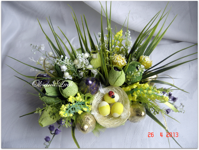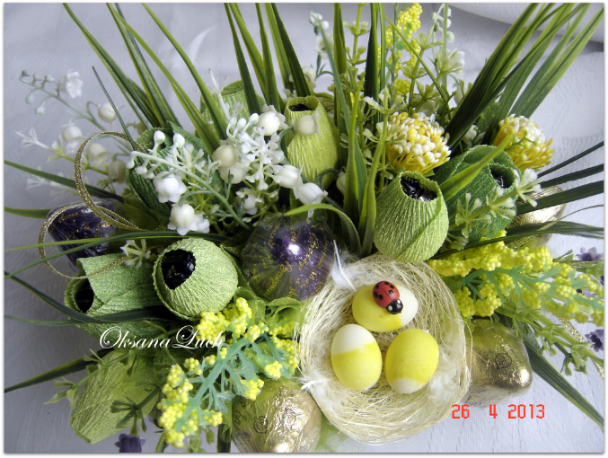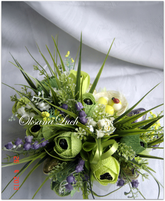 Оксана, очень красиво, так свежо и по-весеннему. Фиолетовые ландыши - неожиданно, но в композиции прямо к месту. Класс! (Как всегда...)
