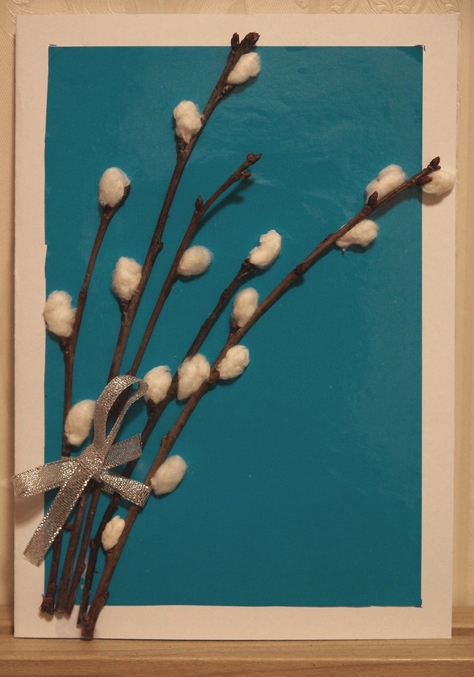 Картон, цветная бумага, подобранные на земле веточки, вата, суперклей, клей ПВА, клеющий карандаш, ленточка.