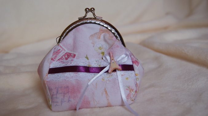 Фермуар 8,5 см, хлопок, кружево, атлас. ленты, пуговичка в виде Эйфелевы башни)