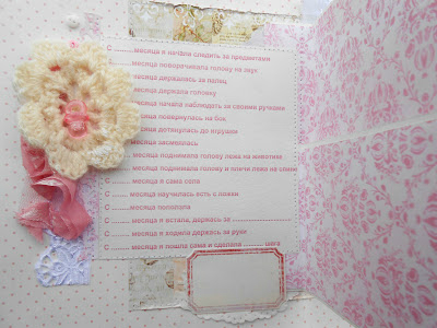 Альбом размерами 22*22,5 см, 5 разворотов. Графики, записи успехов малышки - все это есть в альбоме. В альбоме умещается 46 фото разного формата.