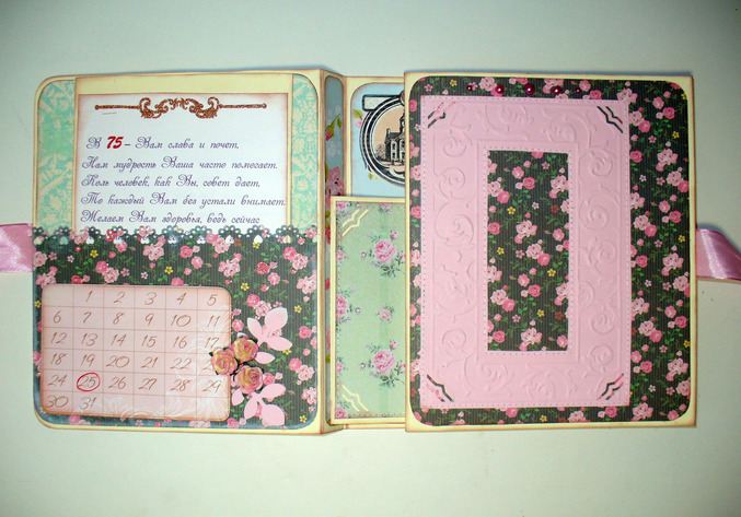 СкрапбукингУвидев оригинальный мини-альбом очень захотелсь сделать что-то подобное, а тут и повод появиля - юбилей моей начальницы! Не смотря а свой возраст, она ещё активно трудится на руковдящей должности и даст фору любому! Предполагается, что в этот альбом будут помещены лучшие фоографии с торжества. Расчитан альбом на 9 фотографий 10 на 15.