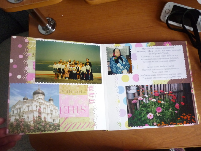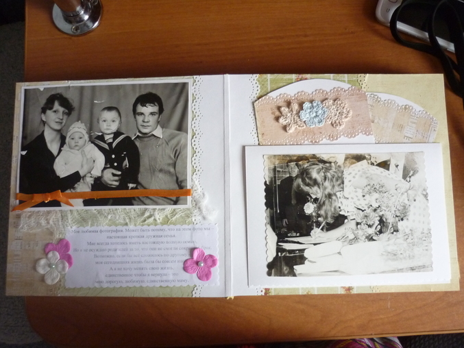 СкрапбукингОчень долго делала я этот альбом, делала тяжело, т.к. моя мама погибла 6 августа 2007 года. А пару месяцев назад я решила собрать историю о маме для моих детей. внуков, правнуков. В альбоме собраны фотографии жизни мамы со школы, фото на обложке сделано за месяц до смерти, в альбоме много истории про маму, но он ещё не совсем закончен. Сначала делала альбом с большим желанием, потом резко не хотела, воспоминания о маме самые лучшие, поэтому смеялась и плакала над каждой фотографией. Девочки, очень страшно держать в руках свидетельство о смерти родной матери!!! Поверьте это тяжело даже через почти 6 лет без неё. Берегите мои хорошие своих родных и близких, особенно матерей. Но, я рада, что смогла сделать этот альбом. Это не просто альбом с фотографиями, это частичка моей и маминой души.
