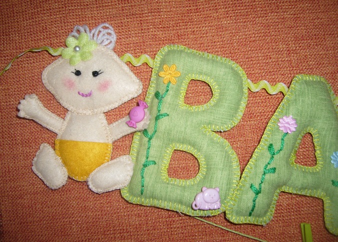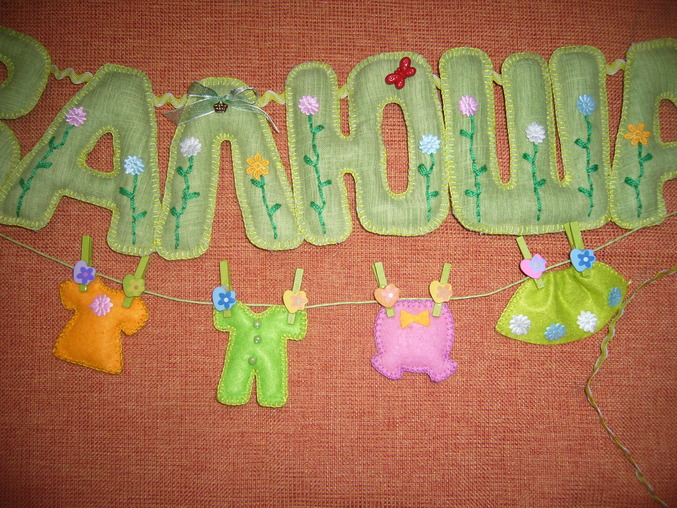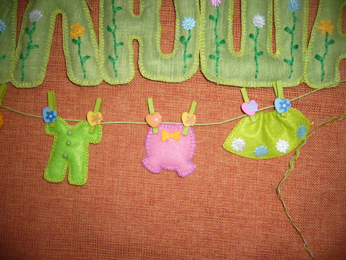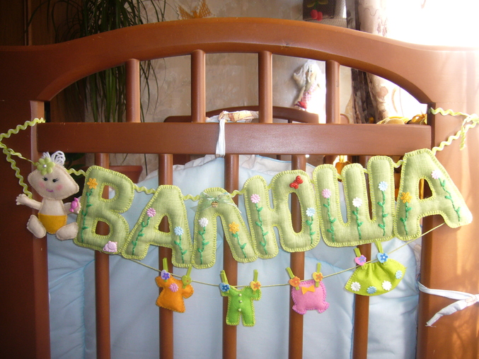 ФетрСшила на заказ вот такую растяжку в кроватку для доченьки девушки Анастасии.Если по бокам приколоть на иголочки, то можно и на стену повесить в детской комнате.
