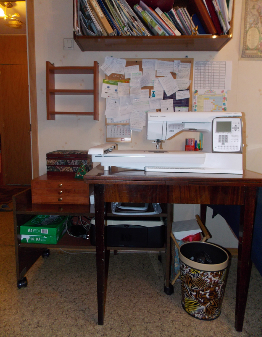 Раньше у меня тоже не было места. Вышивала крестиком лёжа на диване, а шила на кухонном столе.... Но для такой машинки (10кг!) пришлось организовать место! А куда деваться?! Её невозможно таскать по комнатам!!!! И я этому очень рада, чего и вам желаю!!!