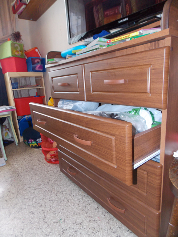 а это комод, который купили в комплекте с детской кроваткой, сейчас забит тканями и флизелинами...