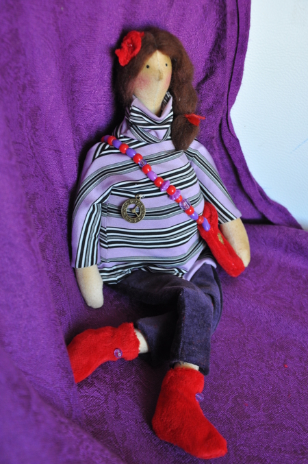 возможно, ещё доработаю немного перед отправкой. а пока так) образ ясен. уютная одежда говорит о комфорте, свободе, легкости. беременяшечка явно активная, энергичная, о чем говорит и красный цвет - цвет силы, любви, энергии (очень люблю его, но в куклах использую умеренно). счастливая, сильная и молодая!